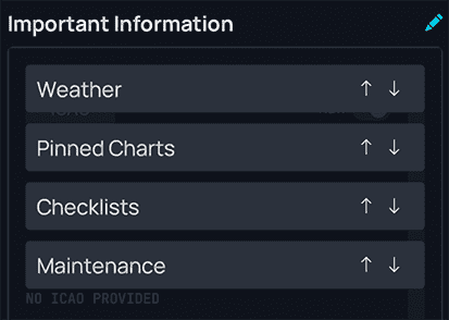 This shows relevant checklists in relation to the current flight phase. Clicking on a checklist card brings up the corresponding checklist.
