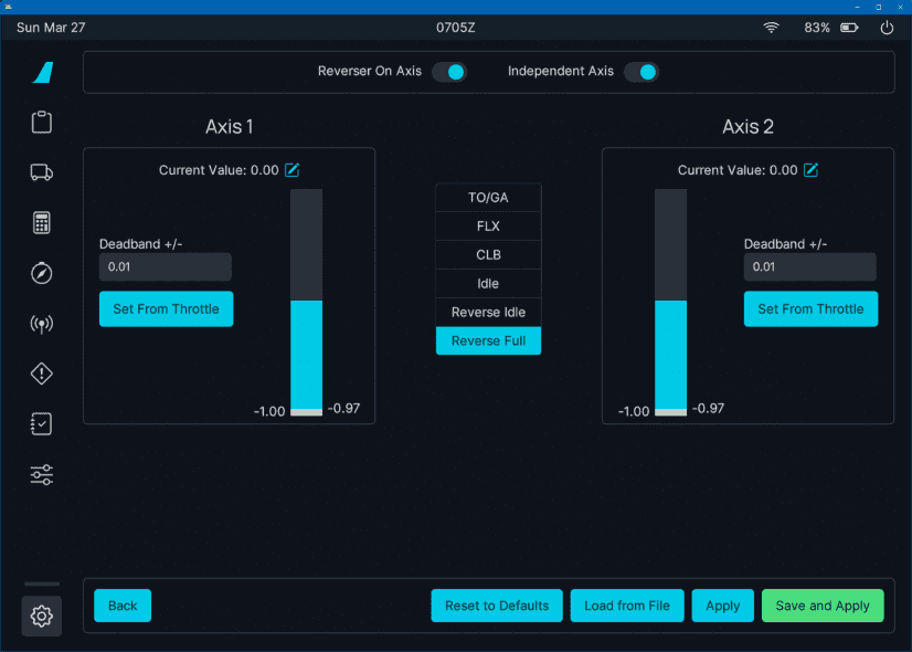 • The throttle in the cockpit should move to IDLE or FULL REVERSE when you set your controller to the lowest possible setting.