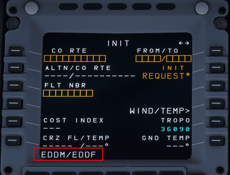 Please note that the INIT REQUEST option will not appear if you have selected both a departure and arrival on the MSFS world menu before loading into your flight.