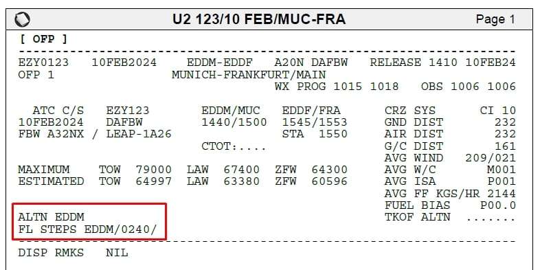 Input the desired cruise flight level in this field. On our OFP, this is listed as 0240 or FL240.