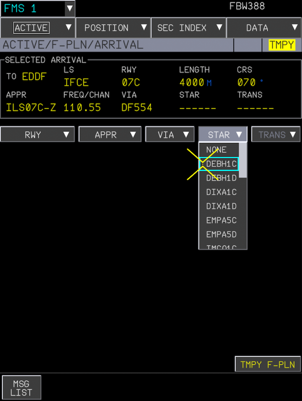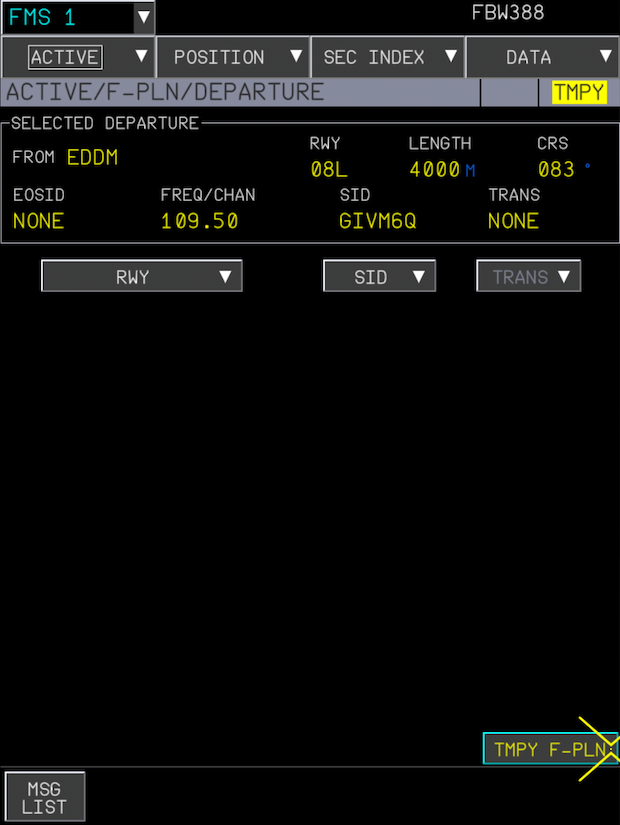 This starts with clicking the DEPARTURE button on the INIT page.