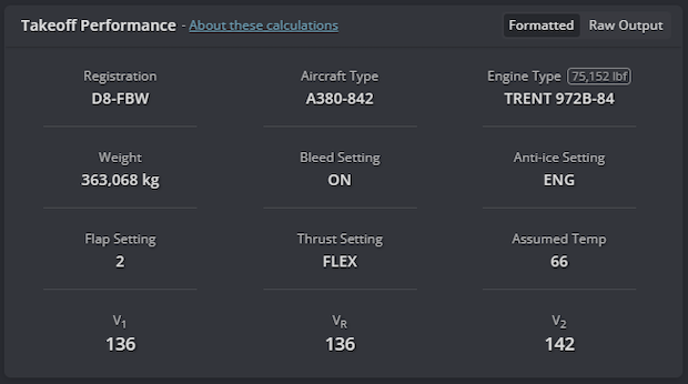 Simbrief Takeoff Performance Calculater.