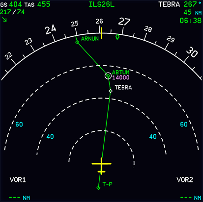 • Automatically, when NAV is engaged, and the aircraft flies the DECEL pseudo waypoint.