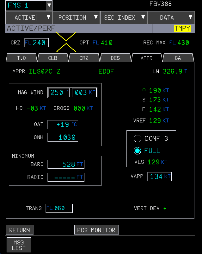 • FMS PERF APPR page is filled - see Arrival Planning).