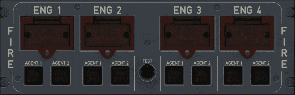 • When pressed for at least three seconds, and until released, tests the operation of the engine fire detection and extinguishing system: