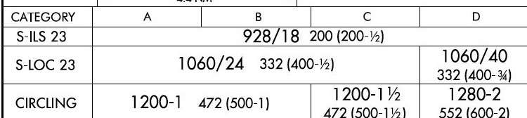 | ILS CAT I RW23 | 928 | 1800 | 550 | 200 |