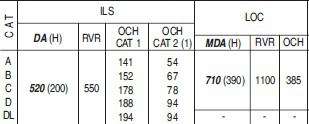 | ILS CAT I R26L | 520 | 550 | 200 |